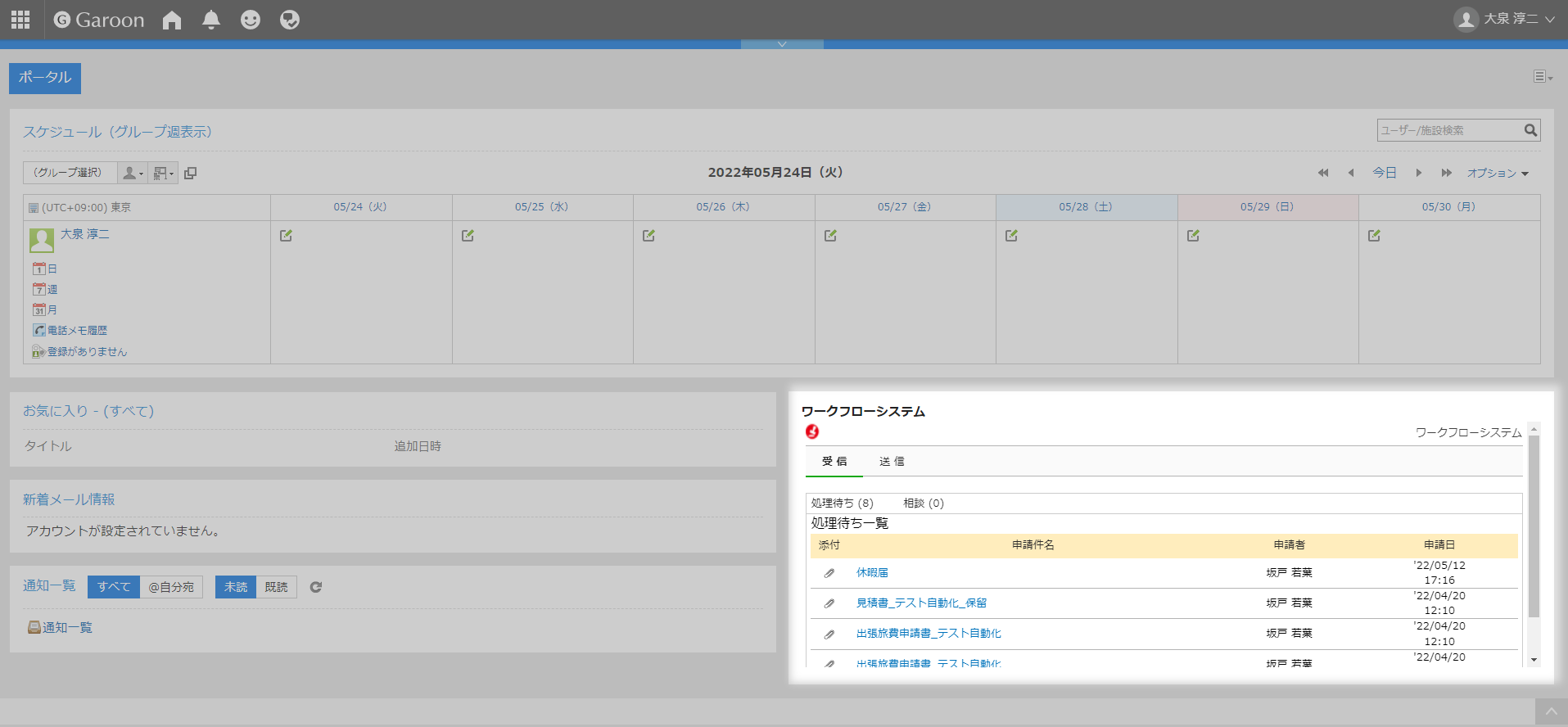 サイボウズ ガルーンのポータル画面に、ワークフローポートレットを表示します。